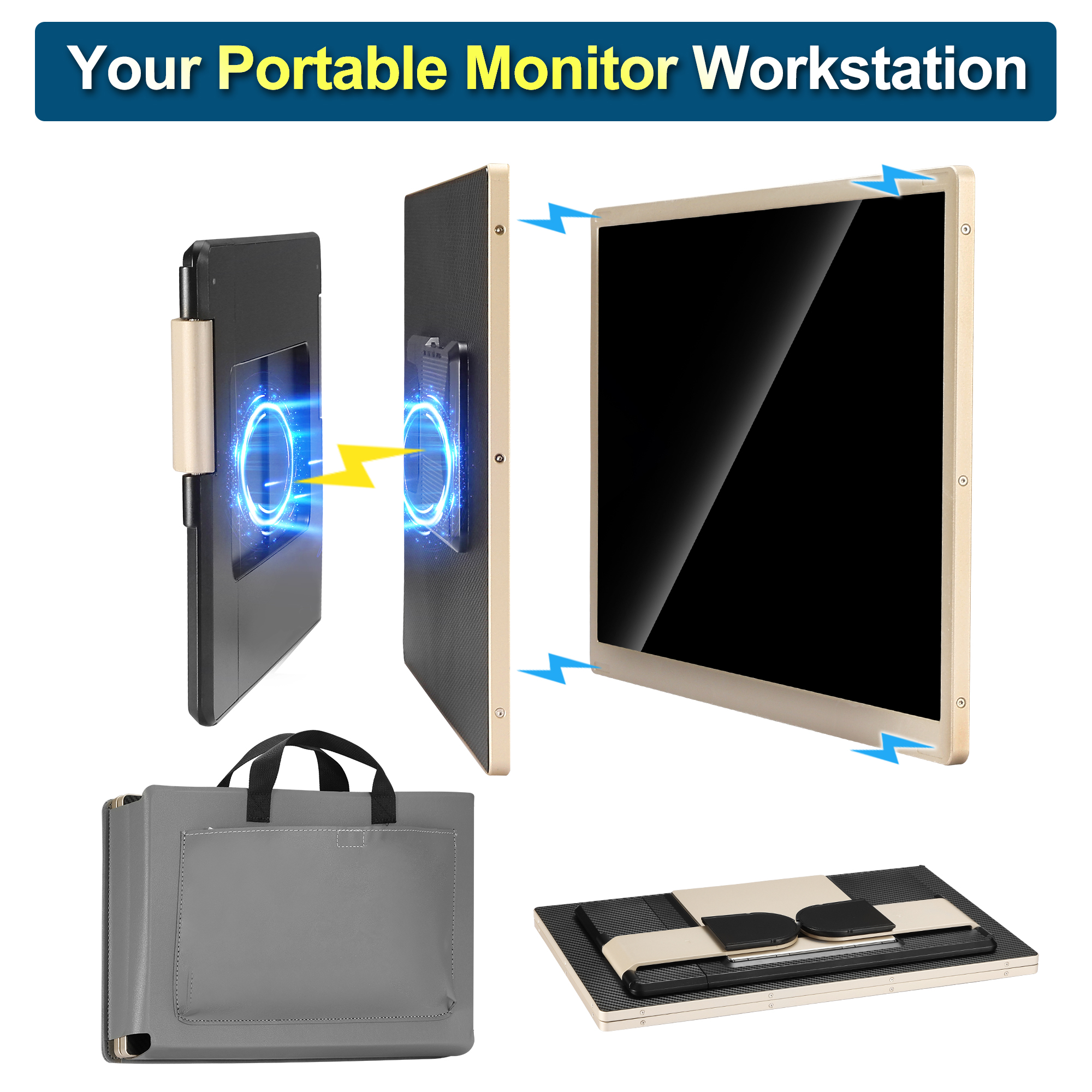 【Portable Monitor】: Both the screen and stand feature magnetic attraction, securely aligning the dual screens to protect against damage. The portable screen combined unit can easily fit into a bag. Alternatively, you can carry just one screen, which weighs only 1.5 pounds.