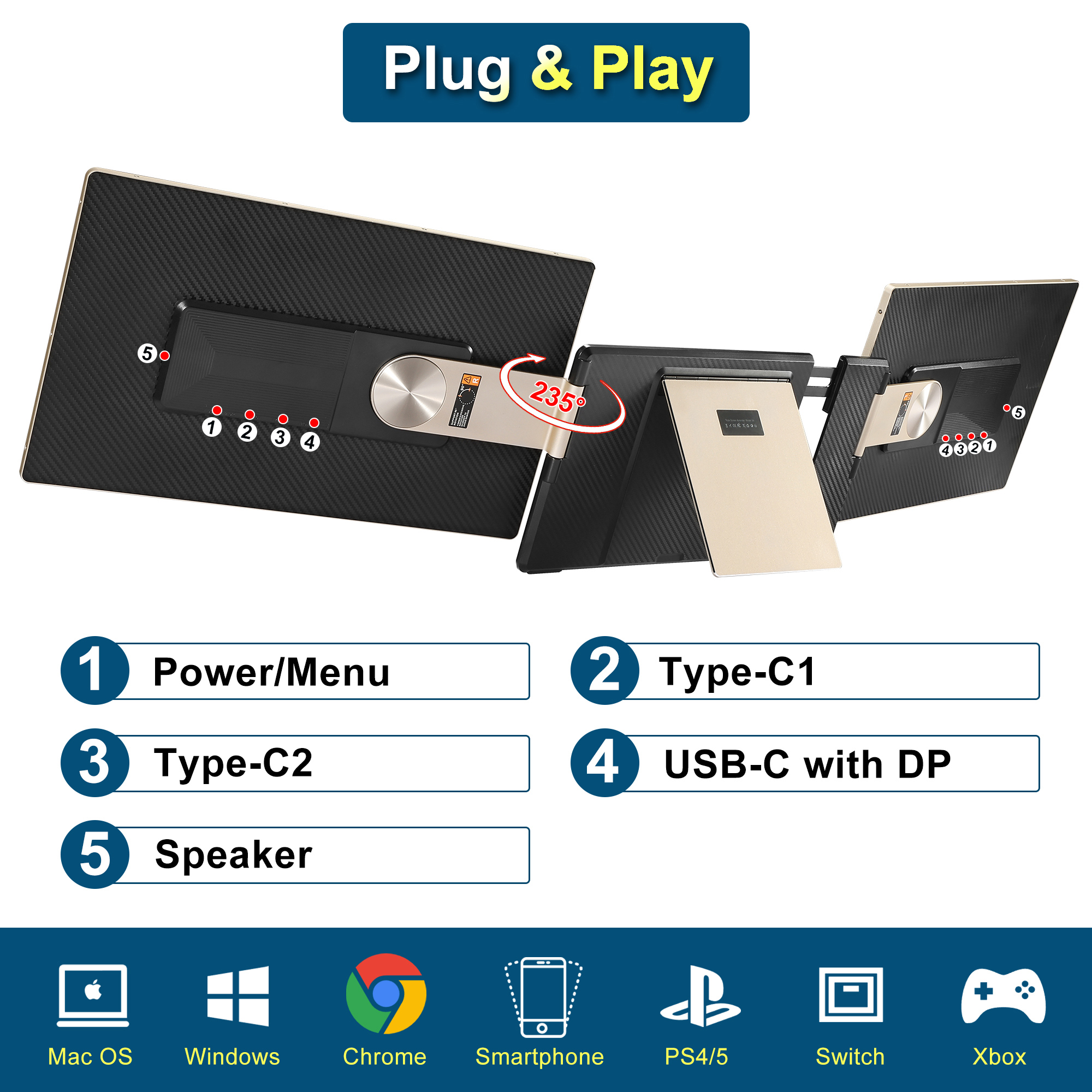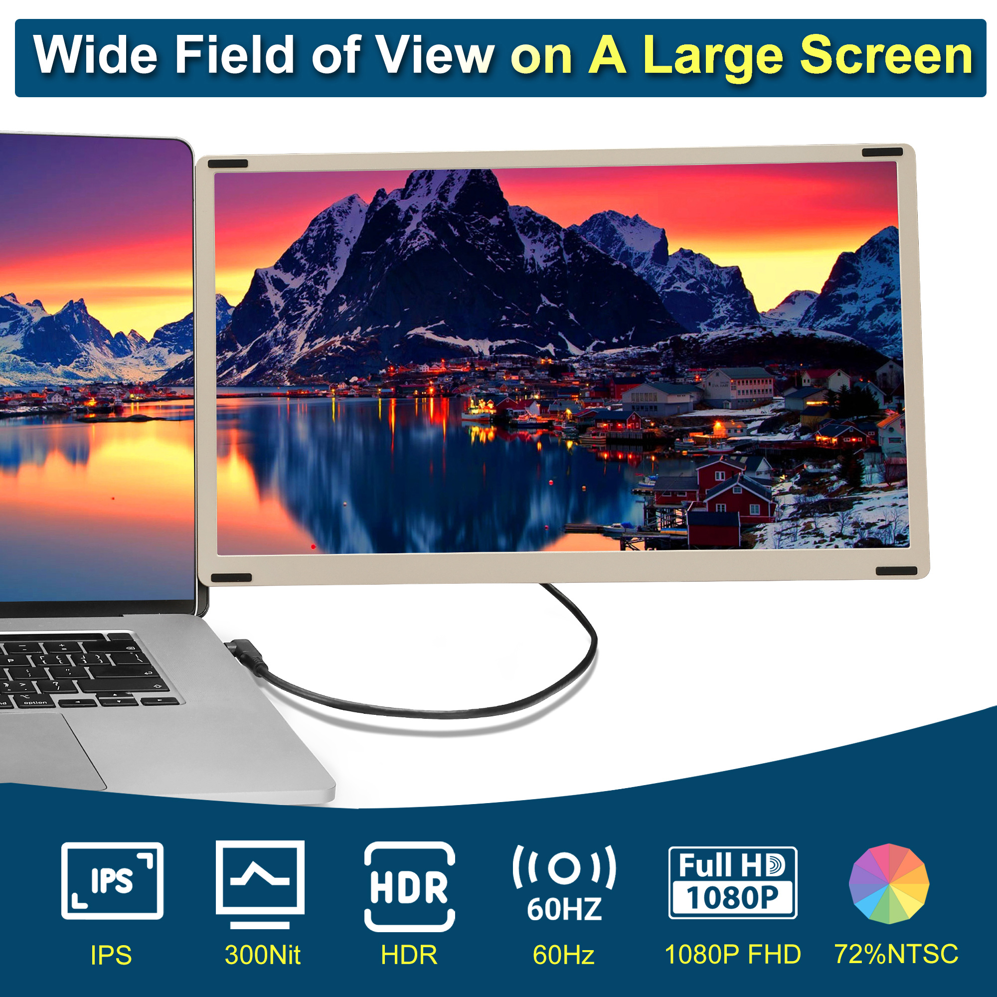 【Wide Compatibility】: The laptop extender monitor is compatible with Windows, MacBook, Chrome, Android, and other devices. For laptops with only one HDMI port, or no full-function type-c port, or MacBook models with M1/M2/M3 chips, an H5 connector cable(search B0DBYY1SVK and buy it) is enable for dual monitor expansion.