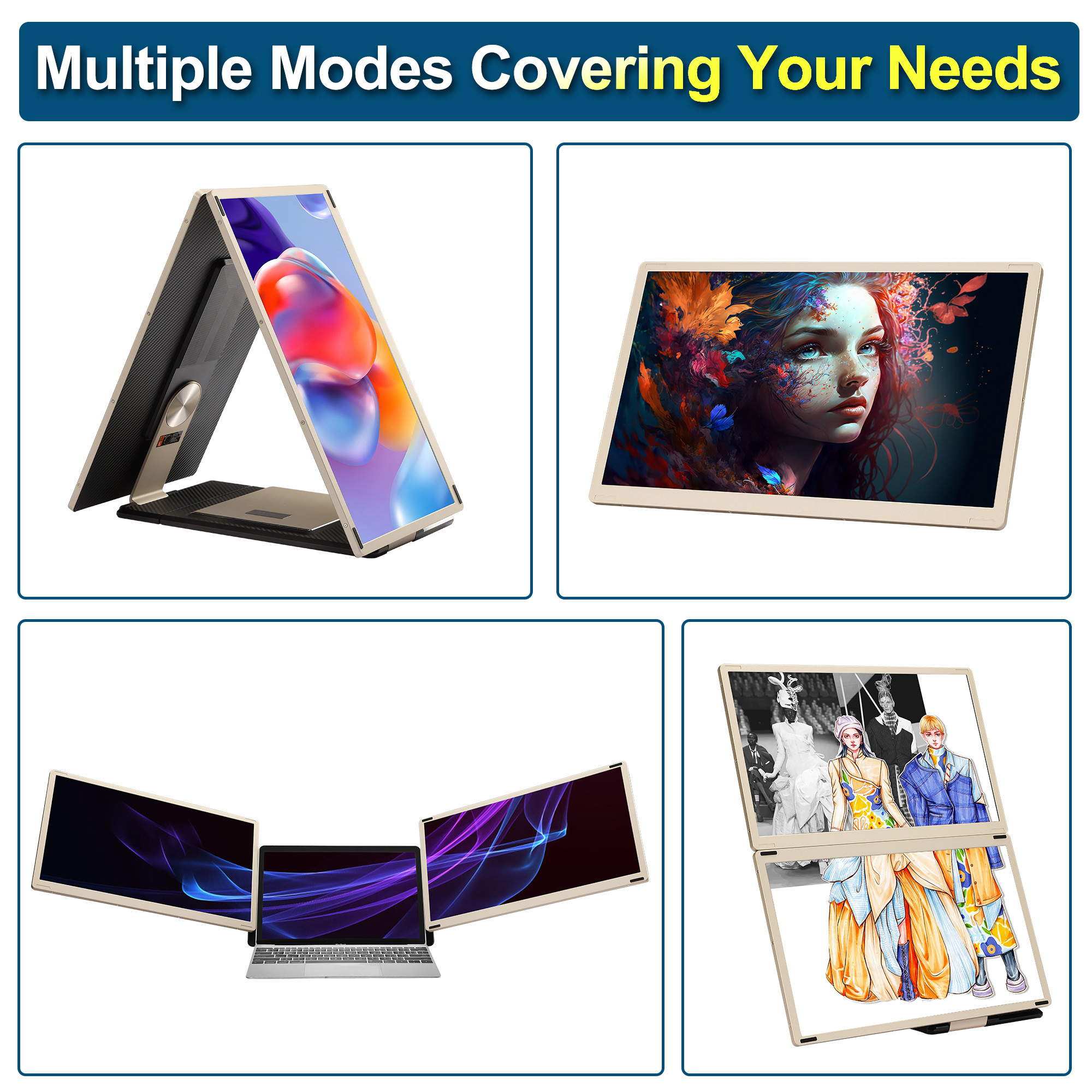 【Versatile Applications】: The upgraded laptop screen extender is equipped with a multifunctional stand and extension bracket, allowing you to customize the screen layout according to your needs. The laptop monitor extender supports horizontal and vertical display orientations, facilitating seamless communication with clients while displaying content both in front and behind. The triple monitor can seamlessly combine to create a continuous display, and the detachable screens can also be used independently.